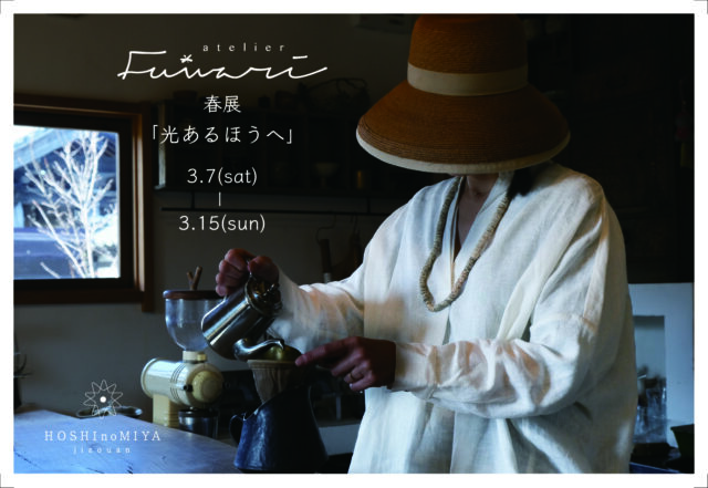 3/7(土)〜3/15(日)までアトリエふわり春展を行います。今回のテーマは「光あるほうへ」光をまとう リネンに 春の光...